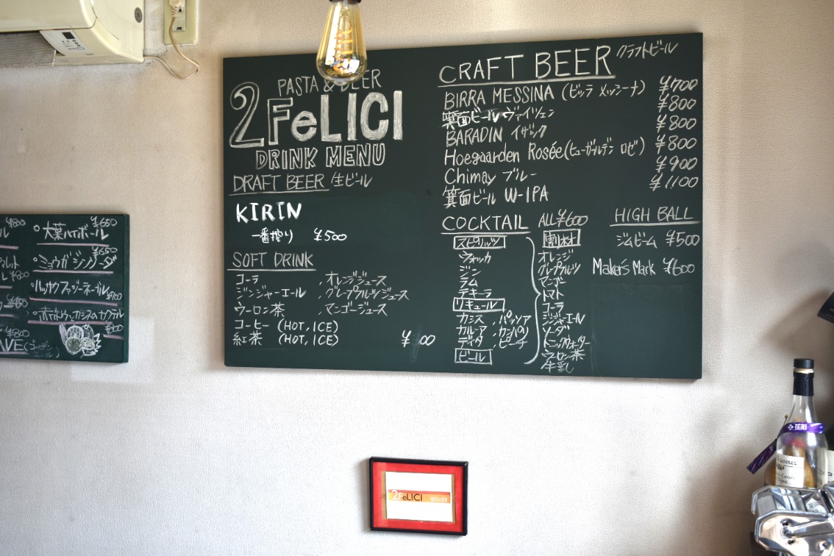 看板メニューであるパスタとクラフトビールで“2つの幸せ”という名前にしたという。