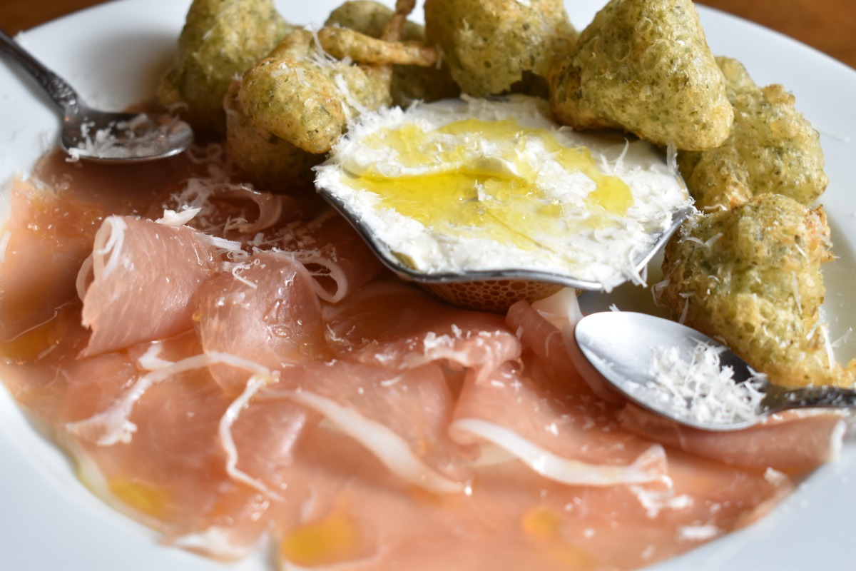 こちらのゼッポリーニには切れ込みが入っており、生ハムとクリームチーズを挟んでいただく、、のだが、まずはゼッポリーニだけをそのままで食べてみる。