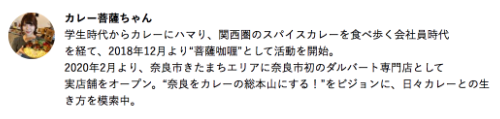 奈良市きたまちエリアで『菩薩咖喱(ぼさつカリー)』というネパール式のスパイスカレー店を営んでおります、カレー菩薩ちゃんと申します。