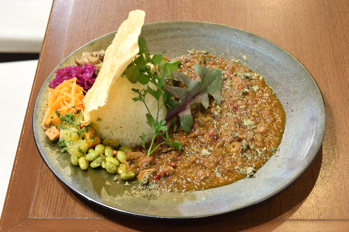 カレーの種類はその時々で変わるそう。今回いただいた「Meetsチキン」は、大和肉鶏を使用した旨味たっぷりのカレー。