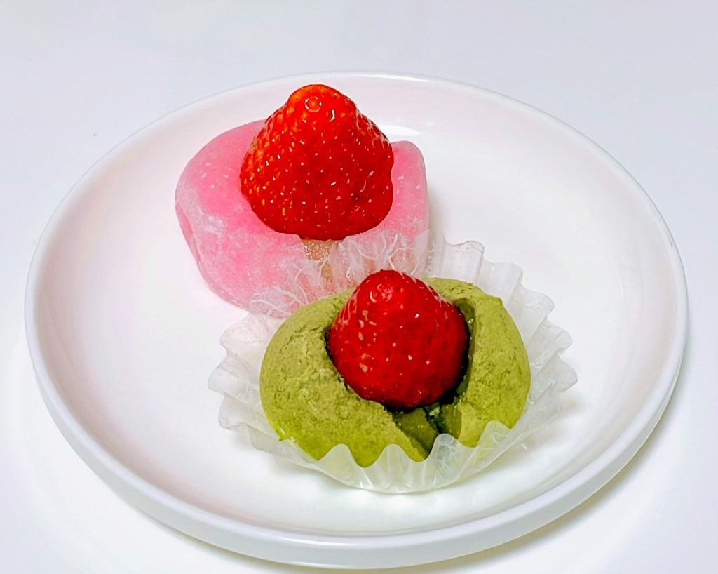 抹茶大福は餡に抹茶が練りこまれていて、ほっこりとした和の味を楽しめる。 さらに、中には生クリームが入っており和と洋がMIXされた、意外性のあるいちご大福で期待以上のおいしさ! 白あん大福は、いちごの周りがピンクのおもちで見た目も可愛い! 甘さ控えめの白あんで、上品な味わい。 つぶあんと食べ比べをしたい方にもおすすめ。