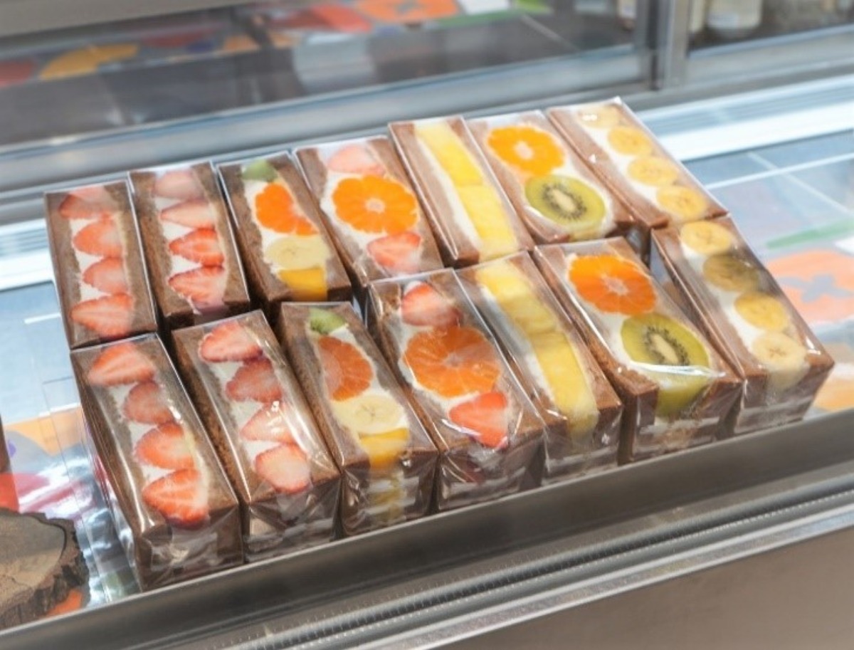 店内でもフルーツサンドは注文できますが、ハーフサイズのテイクアウト用フルーツサンドも人気です。 果実園の土の色からインスピレーションを受けた、黒糖入りの食パン。 くだものを活かすように仕立てられた甘さ控えめのクリーム。 素材の味を楽しめるよう、あえてゴロゴロと大きめにカットされたフルーツ。 三位一体のフルーツサンドは、手土産やギフトにもぴったりです◎ お値段はフルーツミックス518円、あすかルビー572円、キウイ&みかん460円、パイン615円、いちご&みかん520円、みつ芋572円、バナナ378円(全て税込)。