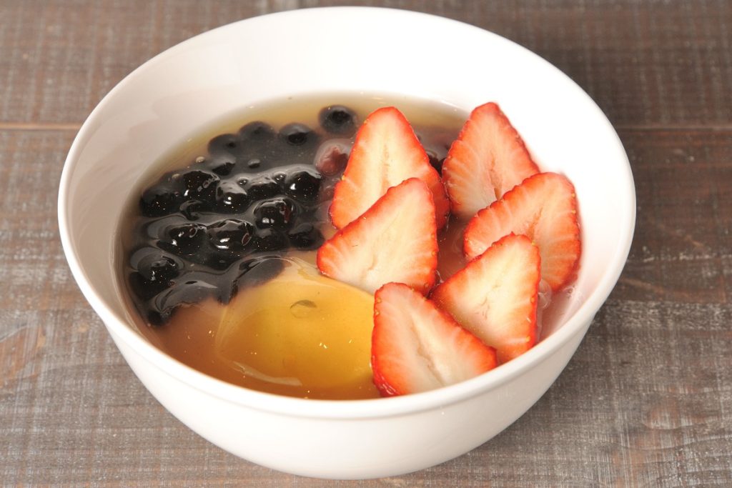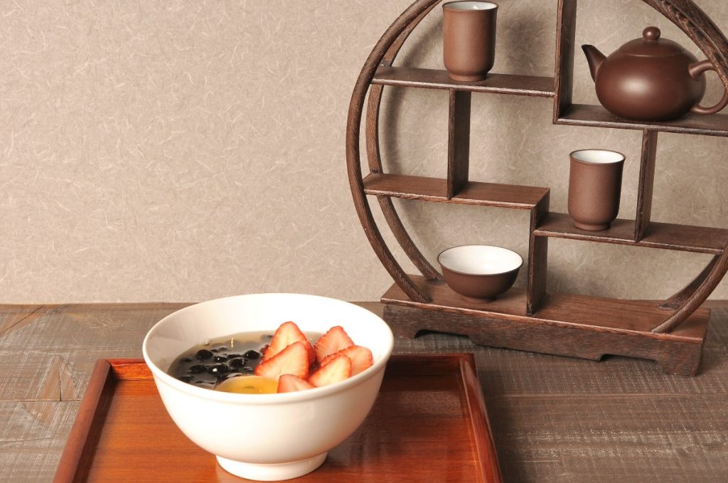 台湾だけに自生する植物のタネを揉みこむとできるゼリーで、のどごしなめらか。