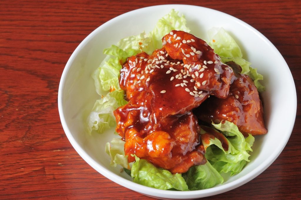 日本でも浸透している韓国式フライドチキン。 コチュジャンや水あめでできた、甘辛いとろみのあるソースが魅力。 本場韓国の調味料を使っている本格式で、お酒のお供にもぴったり!