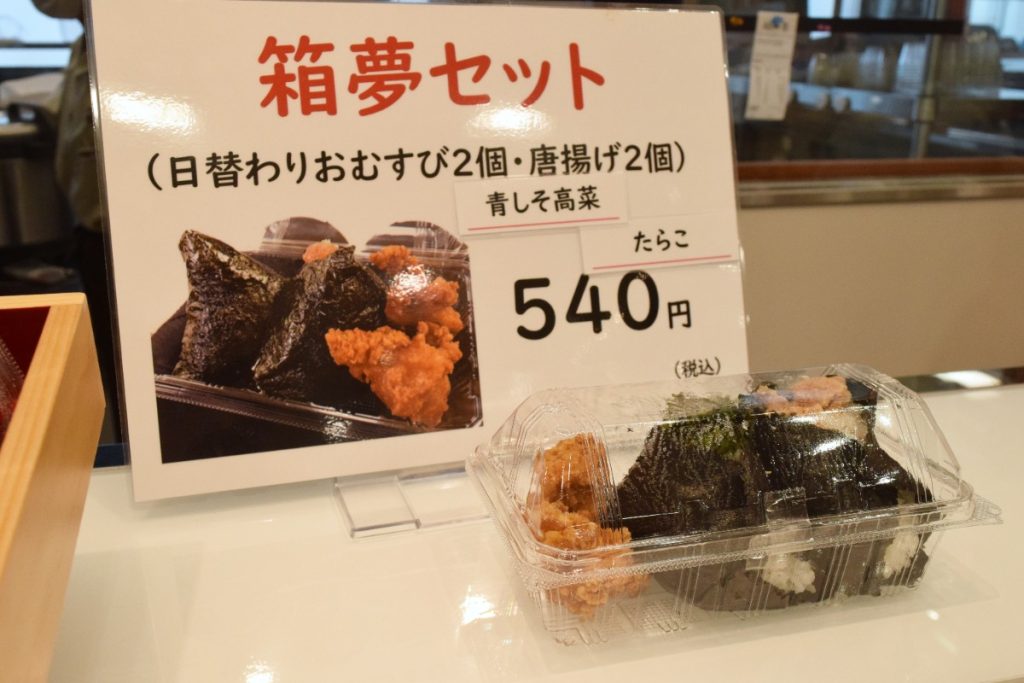 日替わりおむすび2種と唐揚2つ入って540円とリーズナブル。