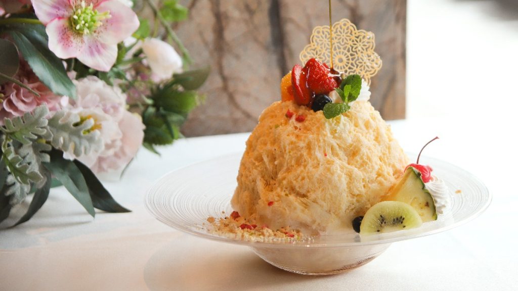 みんな大好きプリンアラモードがかき氷に!【イリスウォーターテラスあやめ池/奈良市】