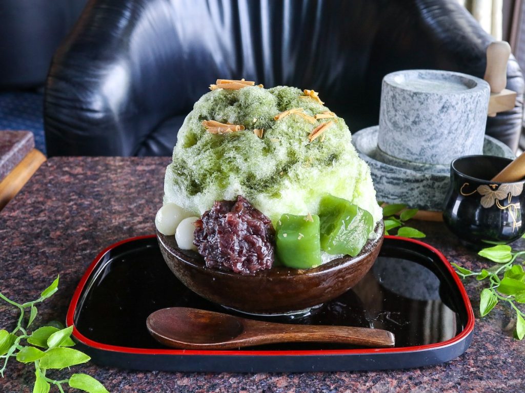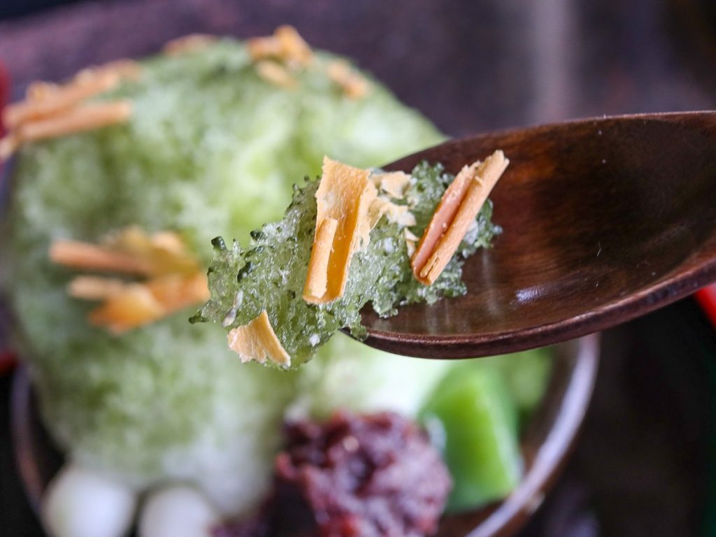 奈良の特産品「大和緑茶」と「蘇(そ)」を使用した独創的なかき氷です。