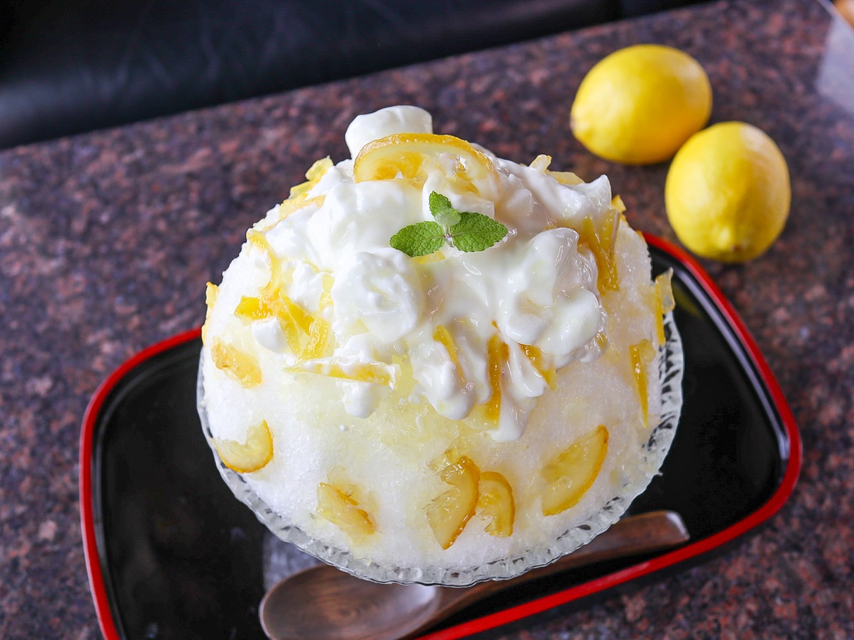 ふわふわの氷にはヨーグルトに練乳をブレンドしたクリームやクリスタルレモン(クリスタルのように透き通った砂糖漬けレモン)もトッピングされています。
