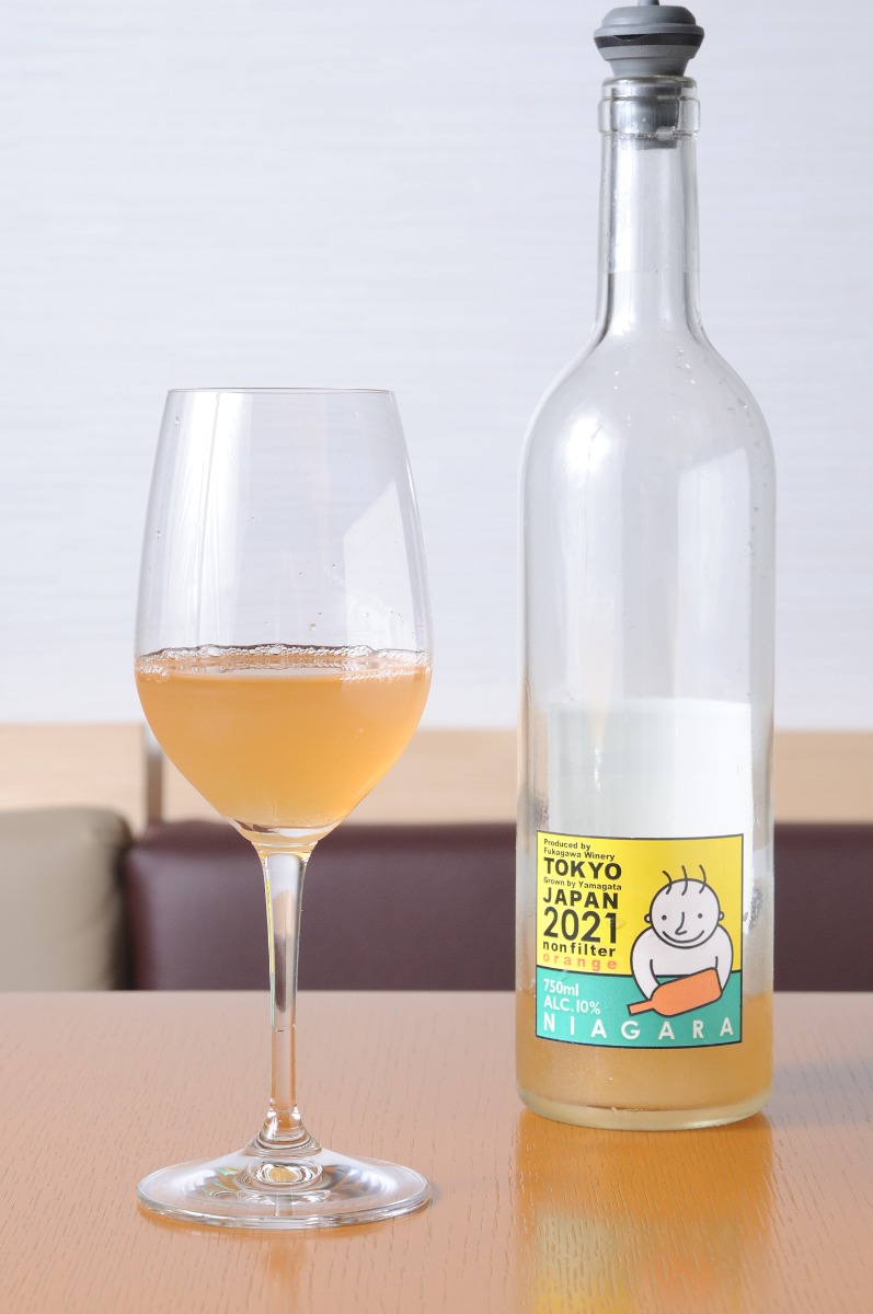 グラスに注いだ瞬間から、マスク越しにも香りが分かる『深川ワイナリー』のオレンジワイン。