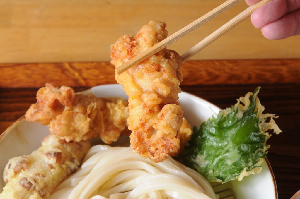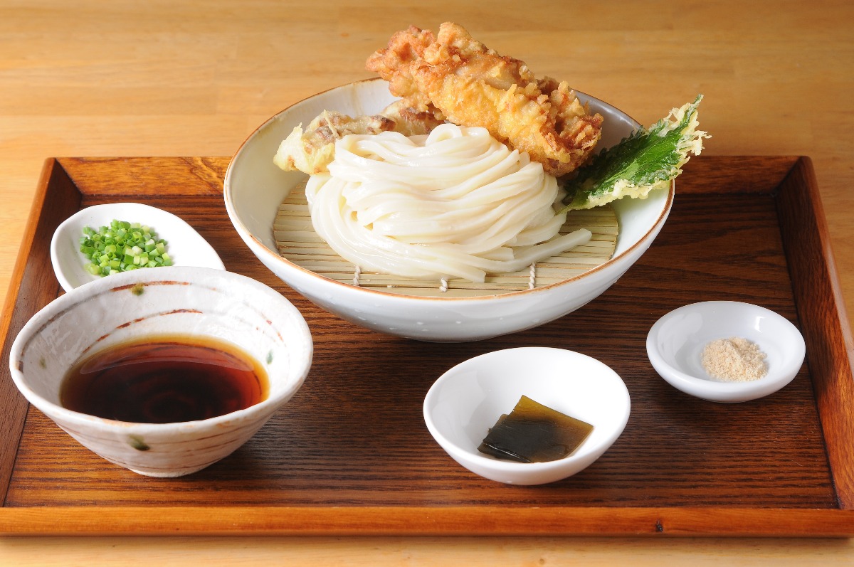 自家製麺とダシがきいた、冷とり天うどん【うどん屋つなぐ|奈良市】