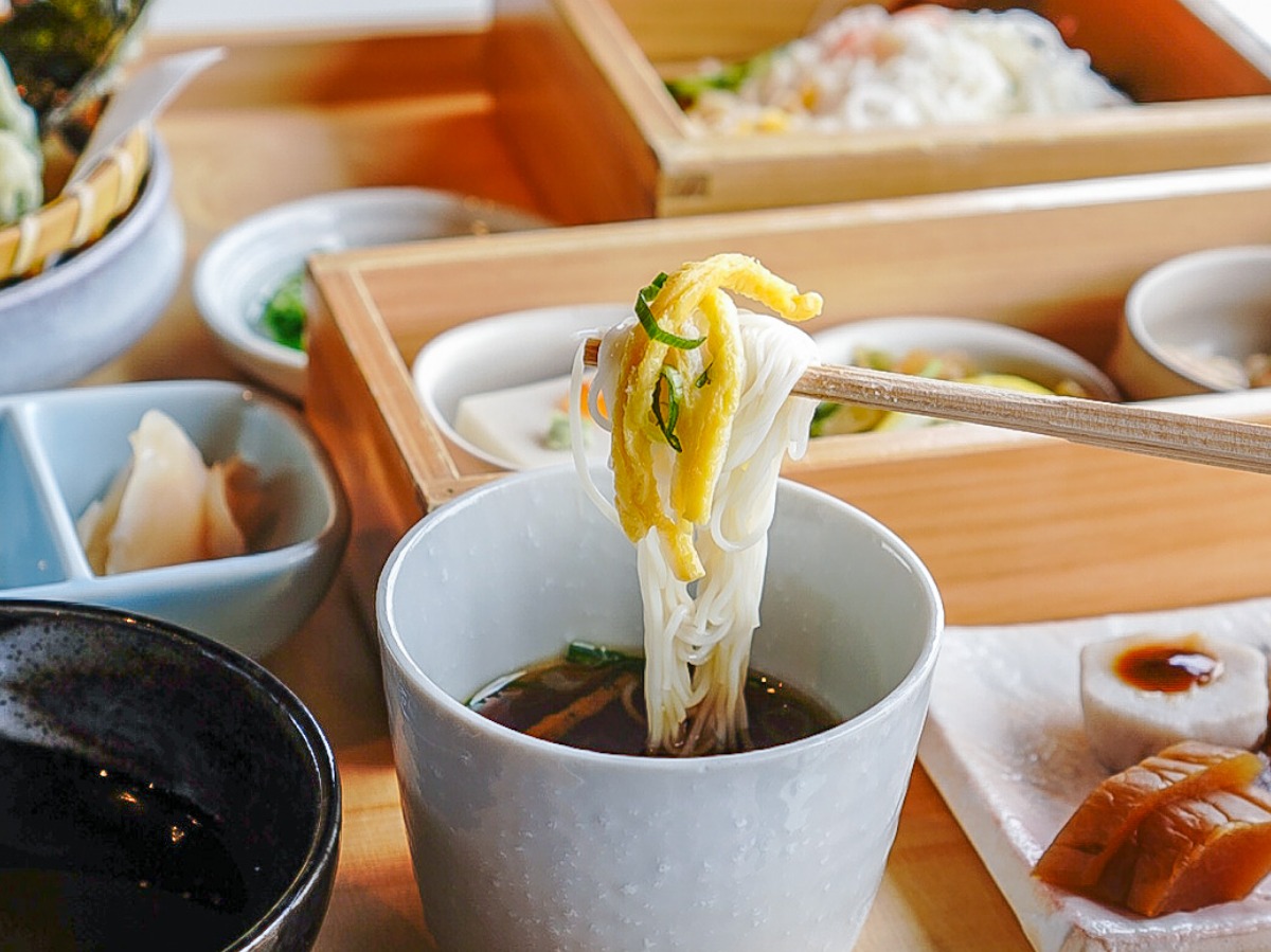 今回は奈良市観光で立ち寄りやすく、奈良名物の三輪素麺と柿の葉寿司の両方が楽しめる『ゐざさ茶屋 夢風ひろば店』の豪華メニューをご紹介します。