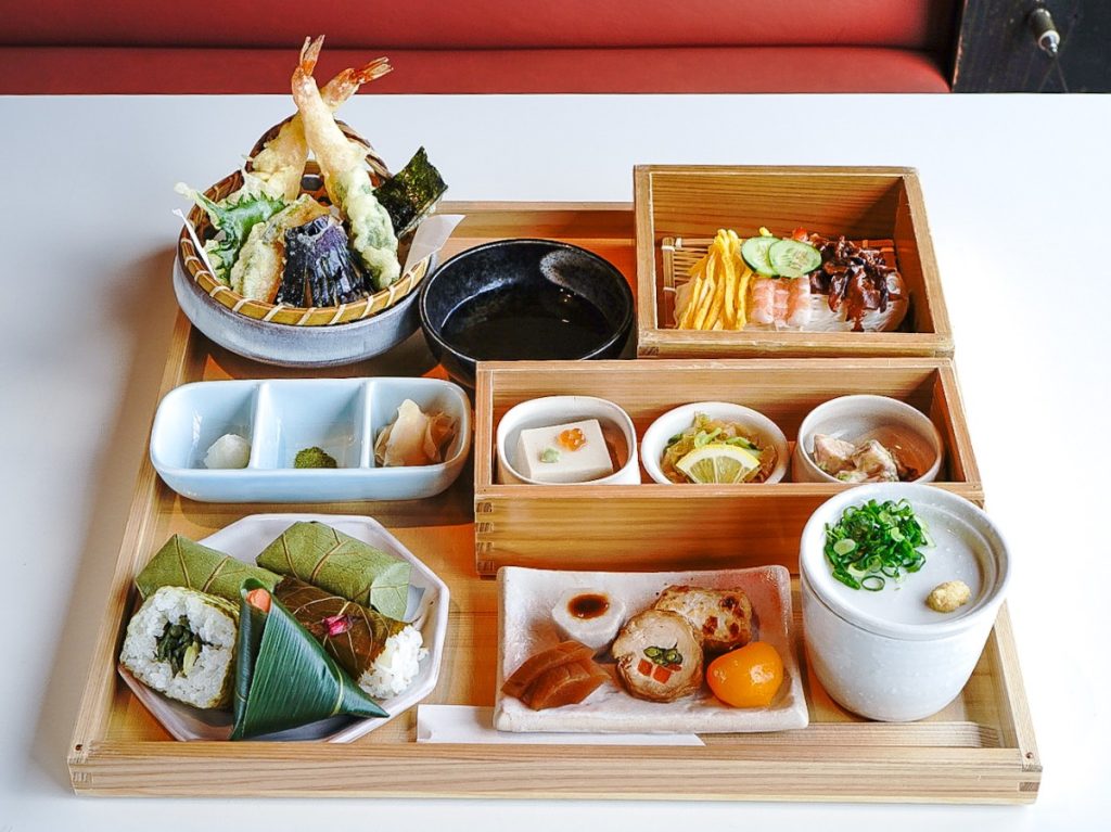 三輪素麺や名産寿司の他、大きなエビが2本も盛り付けられた天ぷら盛合わせや小鉢3品、焼き物や奈良漬け、そして奈良の特産品である柿の形をしたデザートも付いています♡