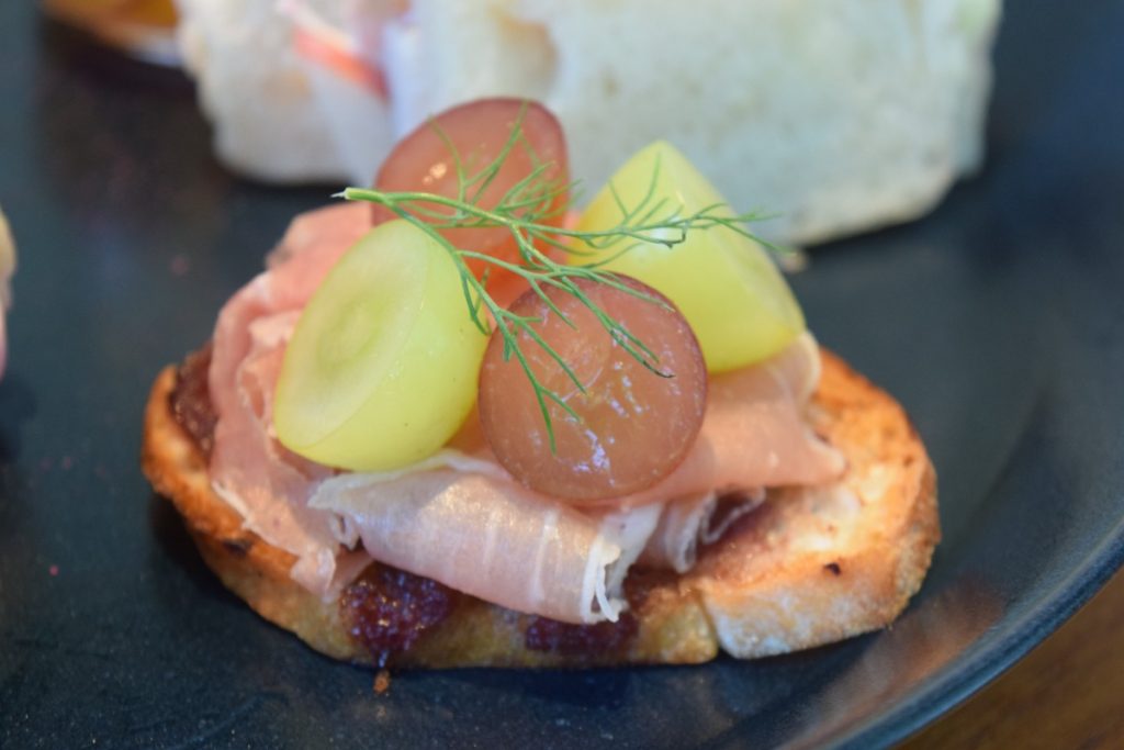 プロシュートと葡萄・マスカットのタルティーヌ/ブルーベリーソース