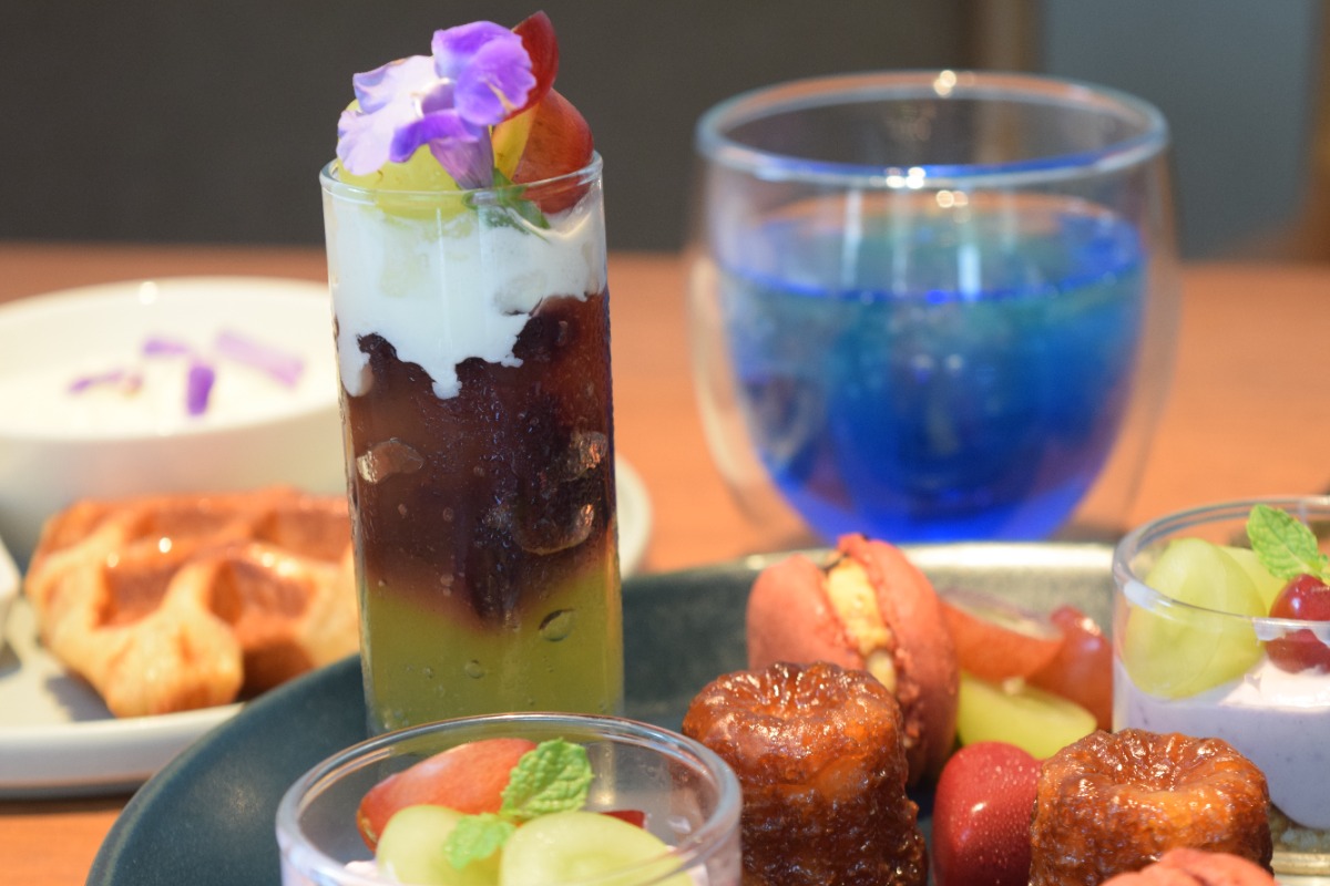 キラキラと輝く秋色のパフェは、葡萄の香りが贅沢に広がり、ひんやり冷たいゼリーが口の中をさっぱりさせてくれる。