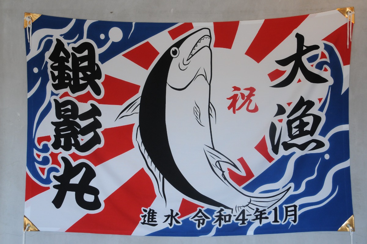 店に着くとまず目に飛び込んでくるのは大きな大漁旗。鯛漁師の娘である私にはとても馴染み深いものです。