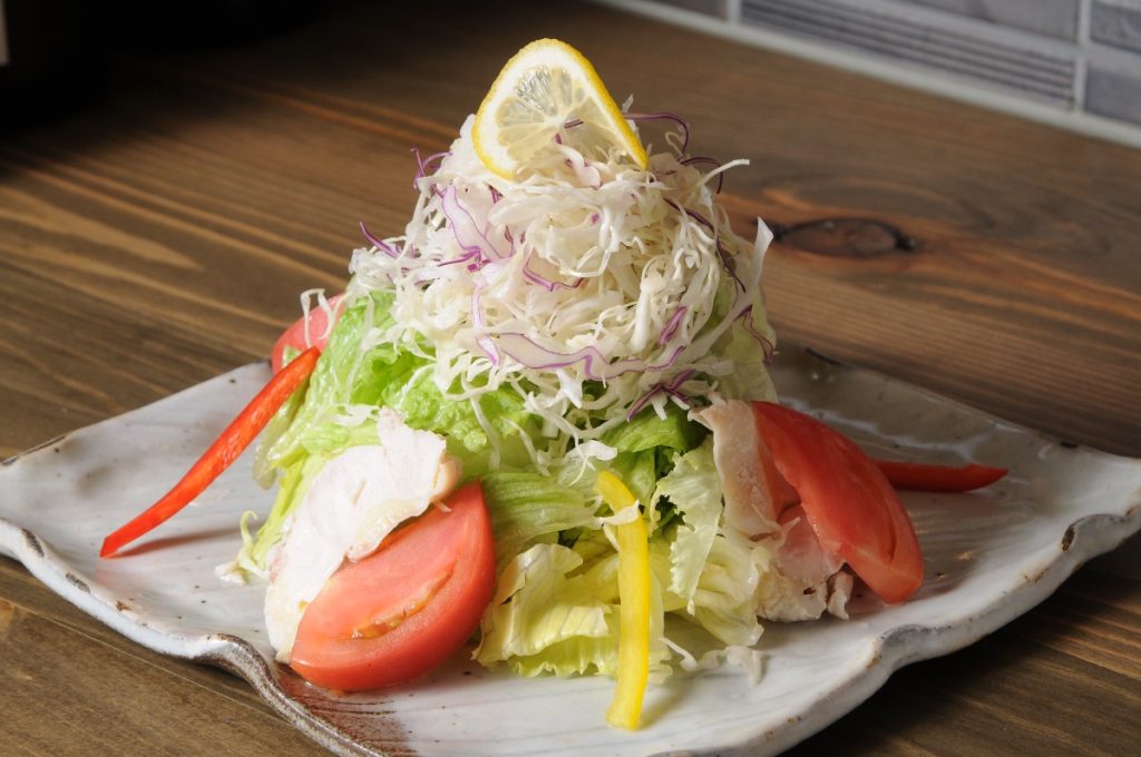 テーブルに到着した瞬間に「デカッ!!」と声が出るに違いない、ボリューム満点サラダ。