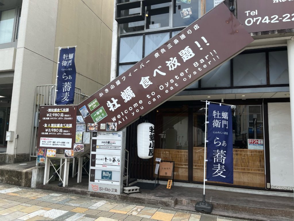 奈良県奈良市三条通り商店街にある居酒屋『かき小屋フィーバー 三条通り店』。