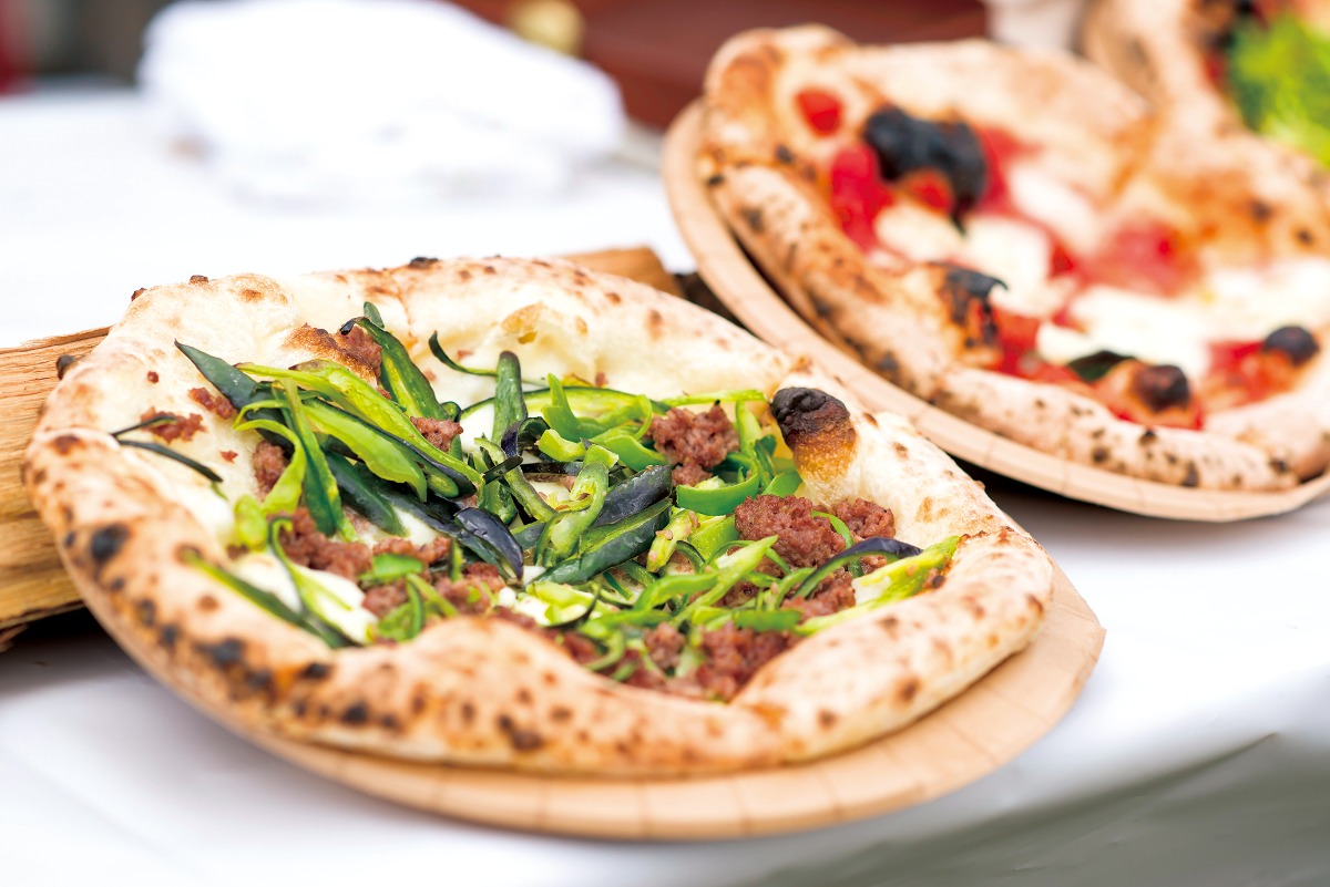 人気ピッツェリアが日替わりで登場し、熱々のピッツァを焼き上げる。