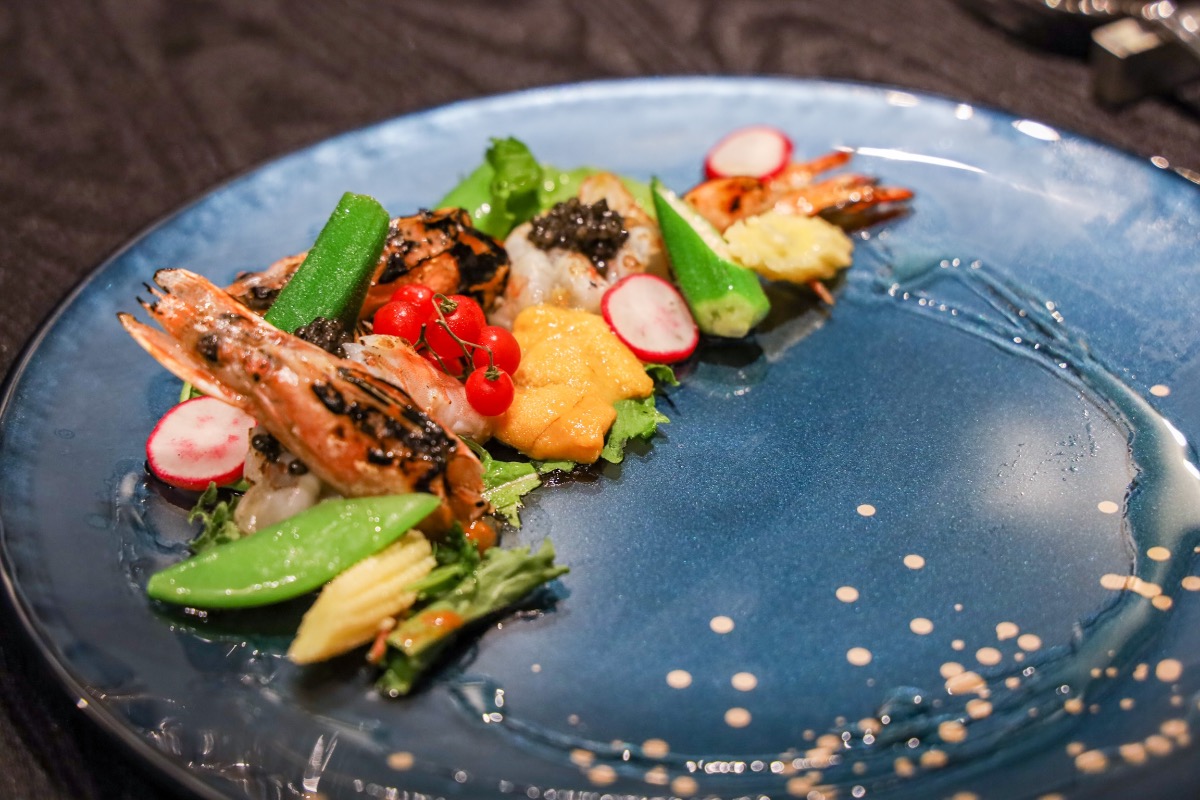海老と雲丹の甘みにキャビアの塩味が相まって、口の中に海の香りが広がる。