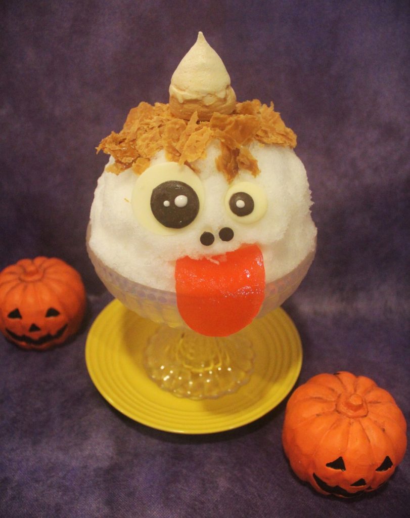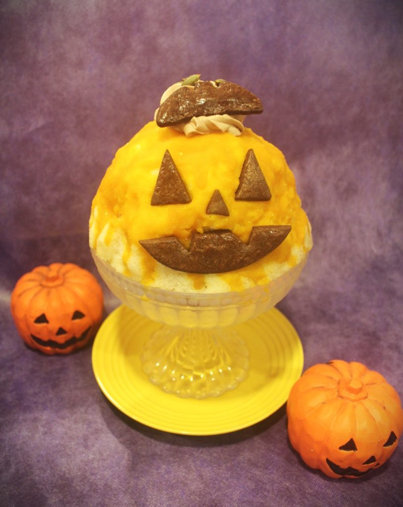 「パンプキンかき氷」は、ジャック・オ・ランタンをイメージした一皿。