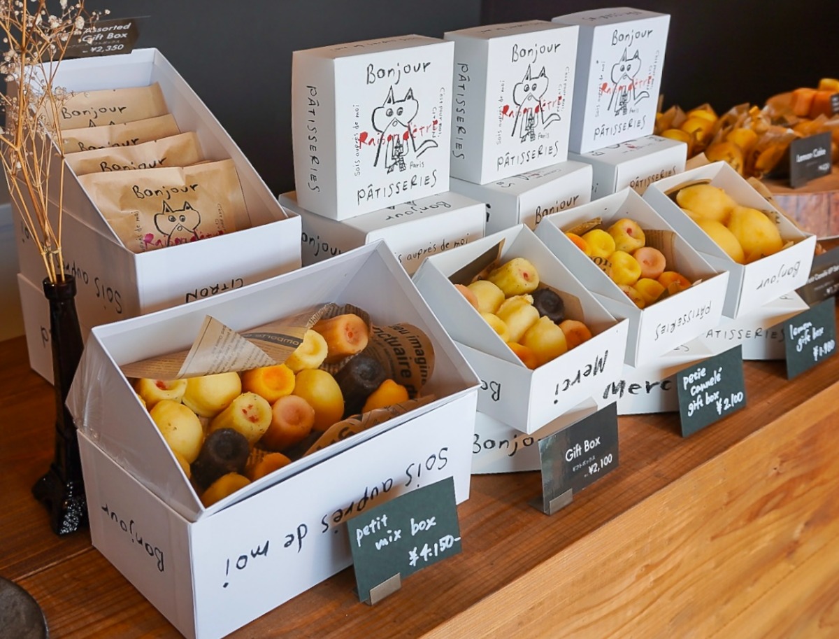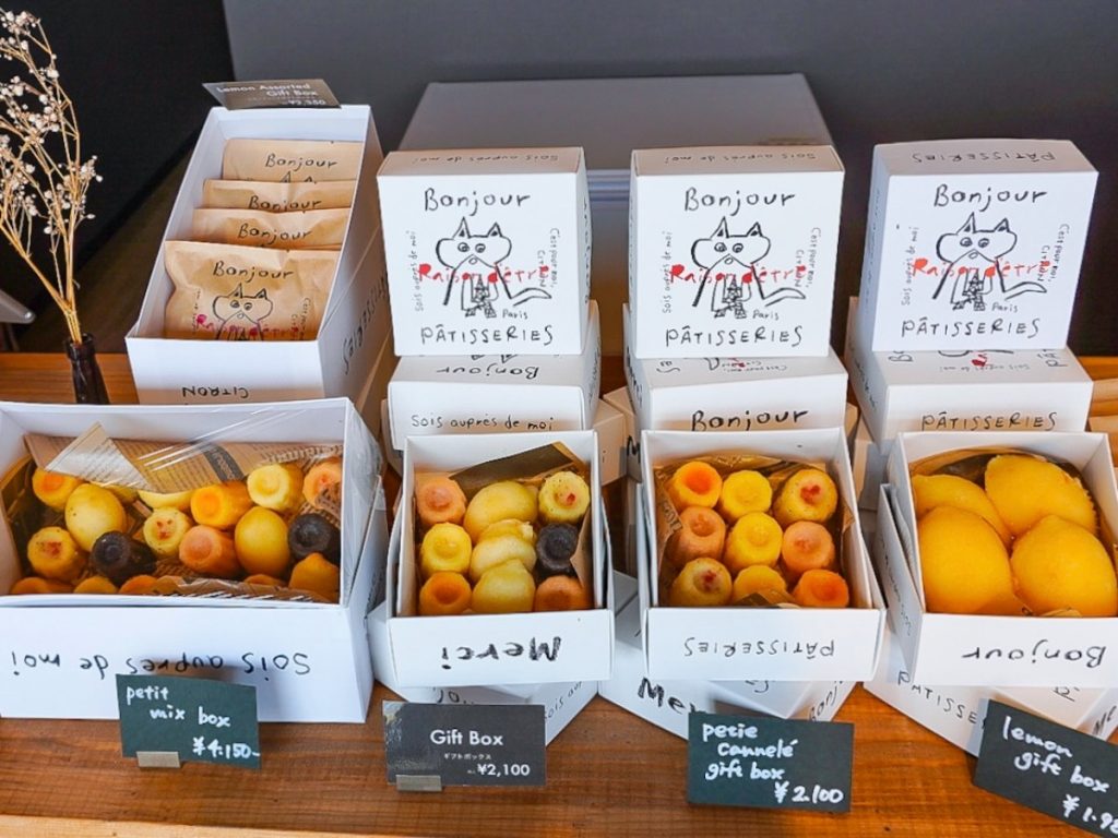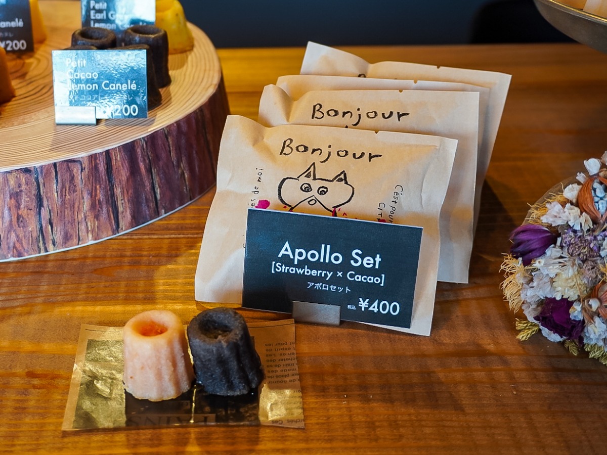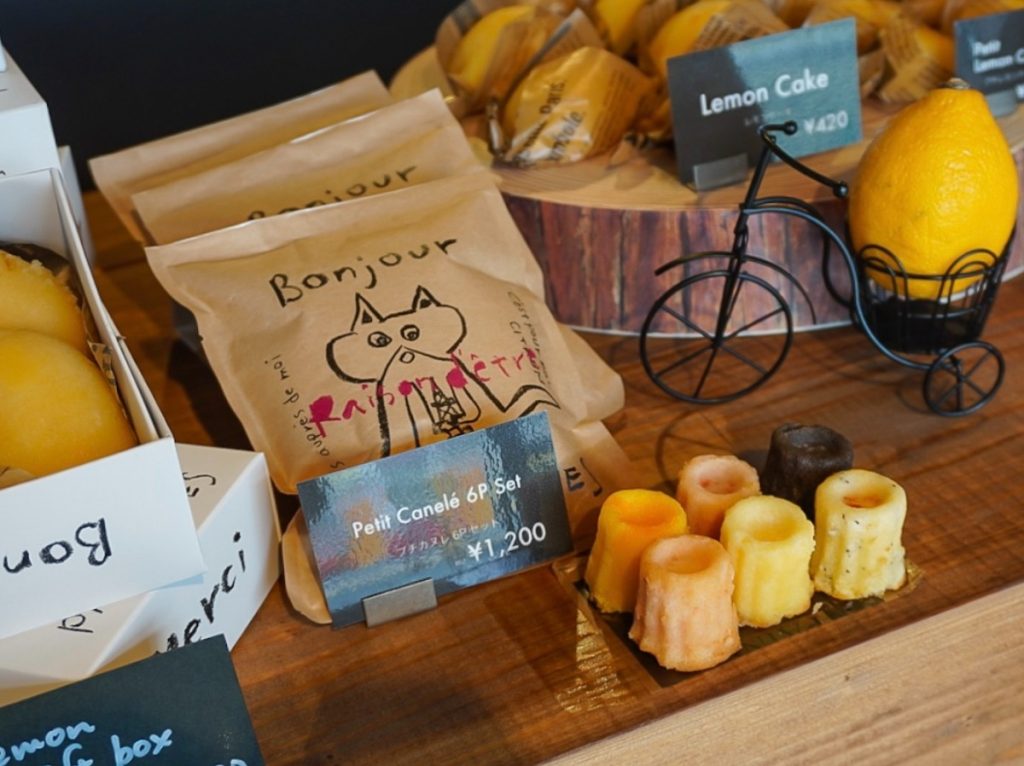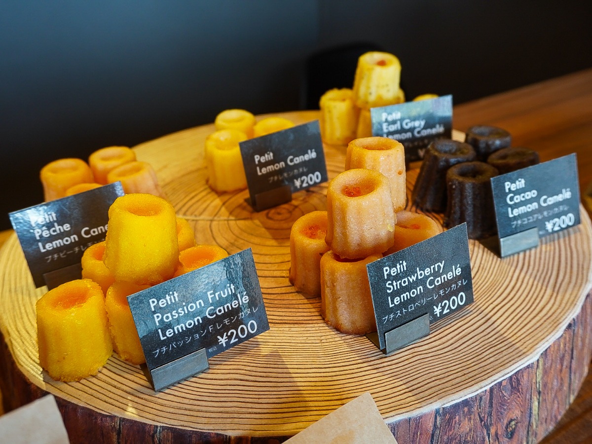 レモンケーキと同じ生地で作られたカヌレは1個200円(税込)。レモン、ココア、ストロベリー、ピーチ、アールグレイ、パッションフルーツと6種類のフレーバーが揃っています。