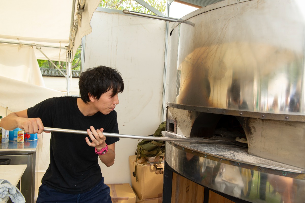 気持ちのいい奈良の秋空の下で、特別に設置された窯で焼き上げるピッツァは格別!