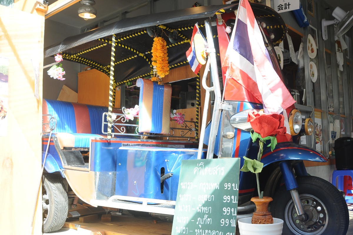 店先にある"トゥクトゥク"は、見たり乗ったりして体験して欲しいと思い設置しました。