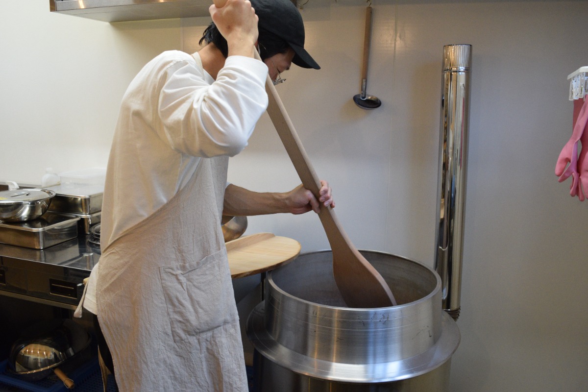 そうすることで全体に馴染み、一粒一粒あずきの風味が際立った自家製あんこへと仕上がる。
