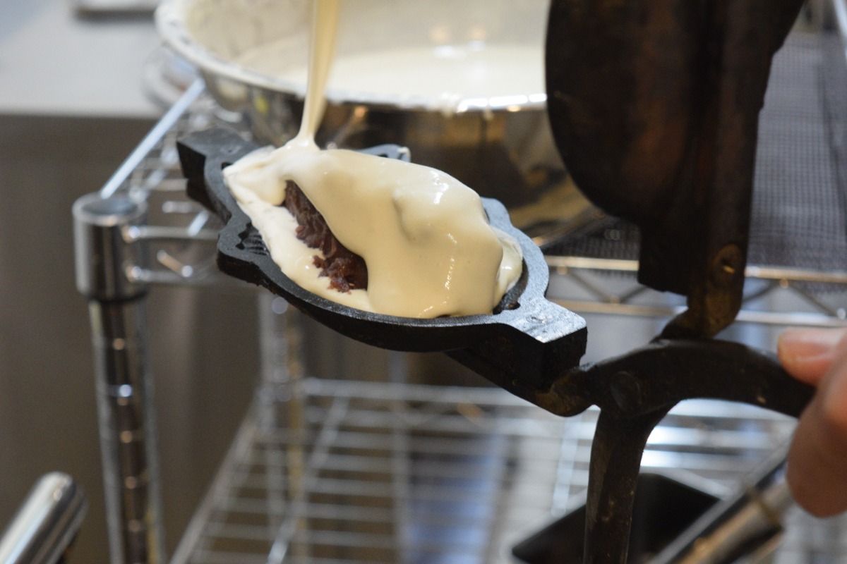 当店では県内でも数少ない「一丁焼き」という製法でたいやきを焼き上げる。