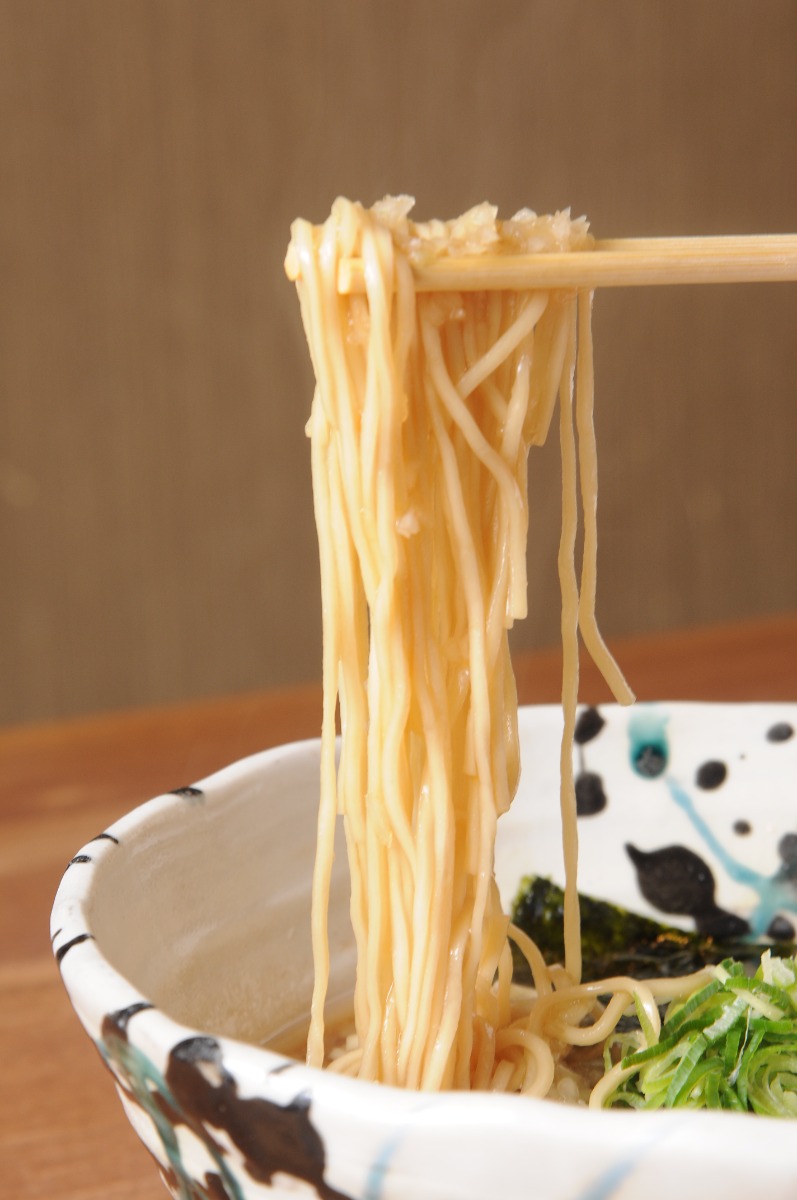 ベースの醤油のコクと、鯛のやさしい風味が細い麺に絡まり、夢中で箸を動かしてしまうこと間違いなし!