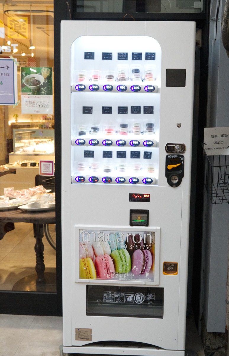 近鉄奈良駅からすぐの東向き商店街にはマカロンが買える自動販売機がある。