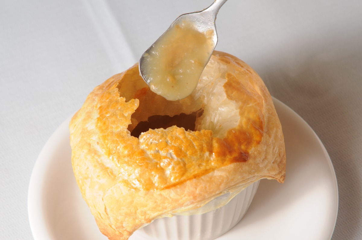 サクサクのパイ生地を中に入れてスープと一緒に召し上がれ。