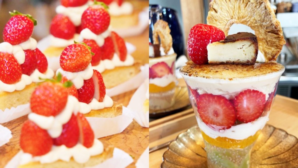 「ブリュレパフェ」いちごバージョンと「古都華のタルト」はいちごの季節が終わり次第終了。
