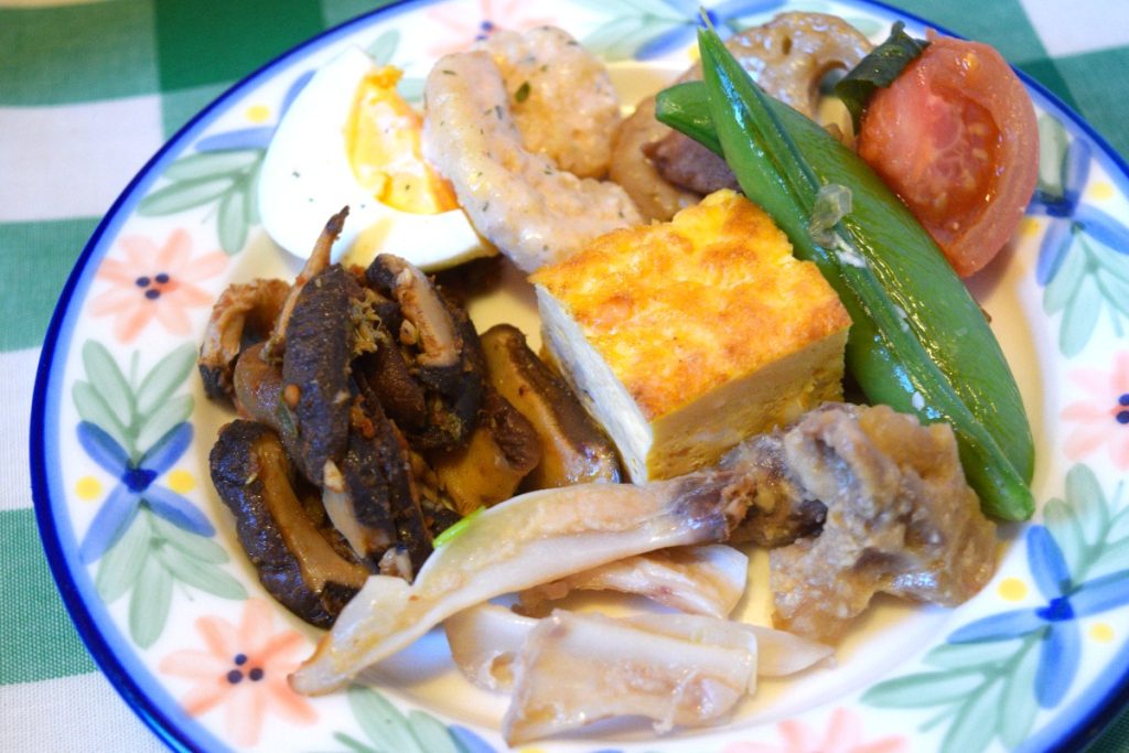 和の食材がふんだんに使われつつも、オリーブオイルやバルサミコ酢など、イタリアンな味つけで仕上げられている。