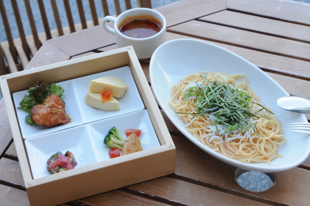 メインはパスタやカレー、ハンバーグなどから選ぶことができる。