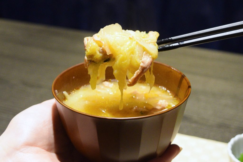 温かい豚汁は、疲れた体の芯まで染みわたるおいしさ。