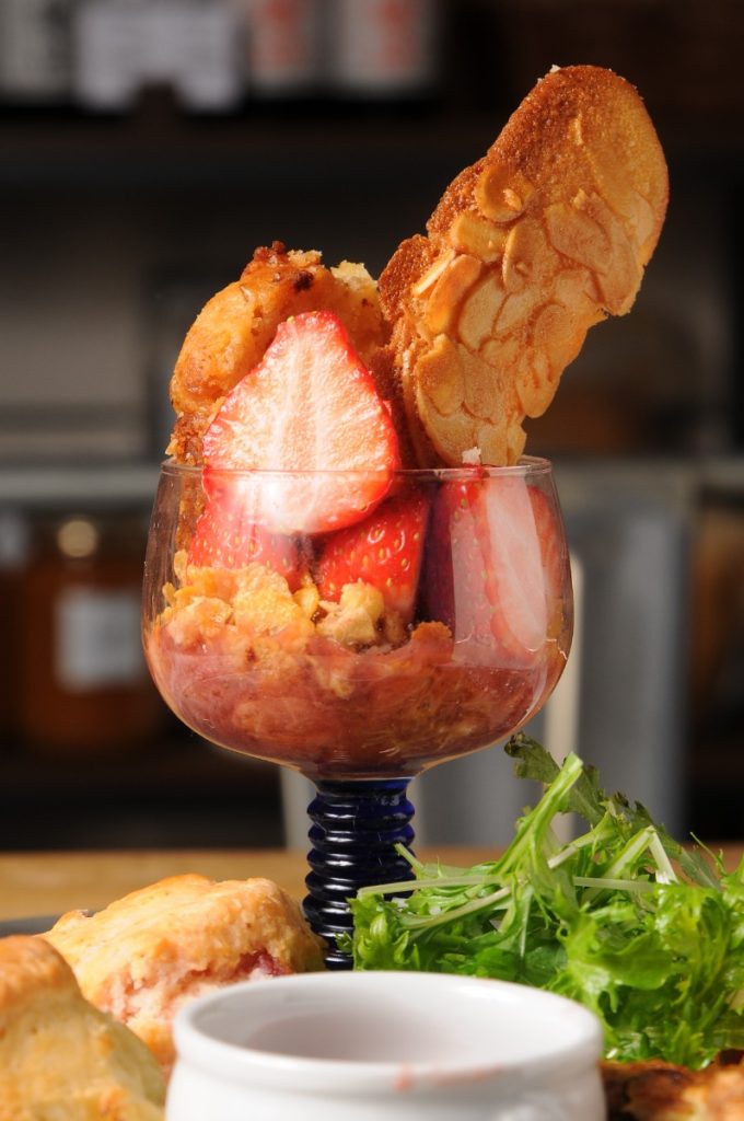 いちごパフェには、グラノーラやいちごジャムなどがたっぷり。