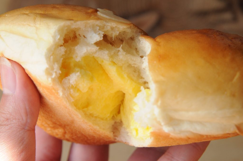 ふわふわパン生地を割ると、とろ~とカスタードがたっぷり出てくるクリームパン。