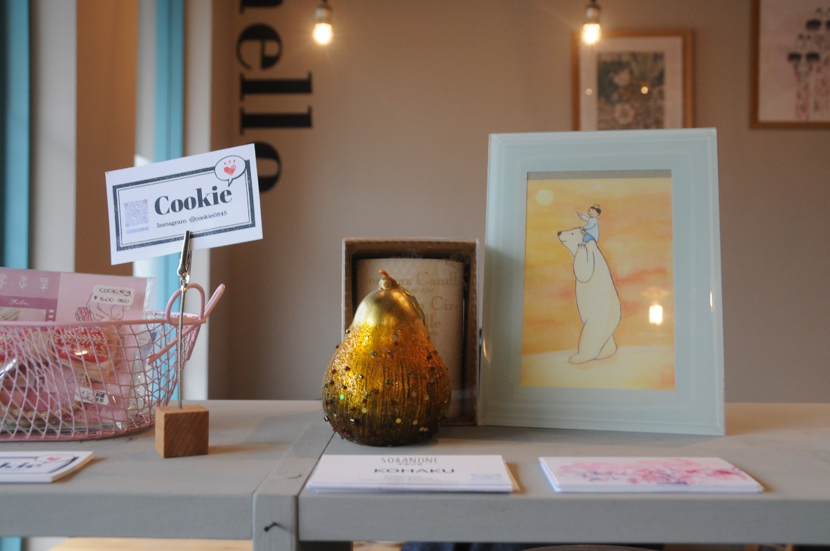 入口には作家によるアイテムを置いていたり、ときには生駒山に住む作家の作品を展示していたり。
