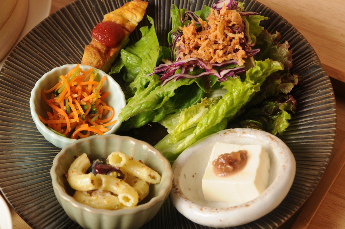 例えば、日本食であるこんにゃくを洋風に味付けしたり、ズッキーニのフリットにほうじ茶塩を添えたり。
