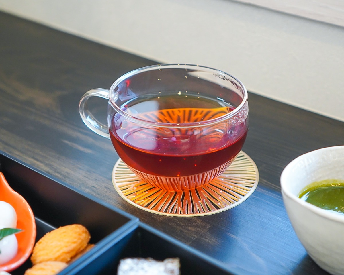 ドリンクには、すっきりとした味わいの和紅茶がセットになっています。