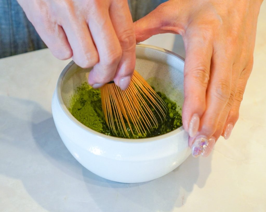 注文を受けてからお茶を点てて、ミルクに抹茶を注いで作る「抹茶ラテ」も人気の一品。抹茶とミルクが融合していくグラデーションはいつまでも眺めていたくなるような美しさです。