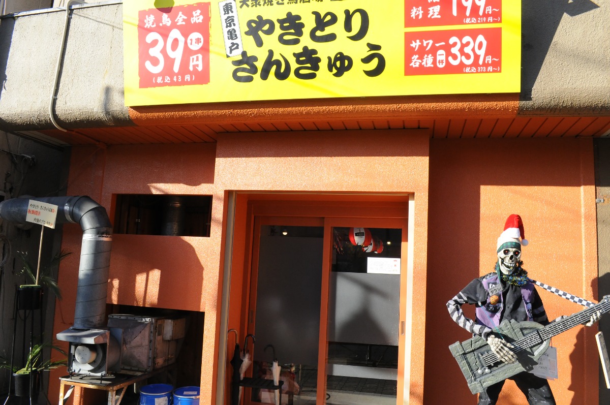 目を引く外観にはなんと「焼き鳥全品1串39円(税込み43円)」という衝撃の文言が踊る。