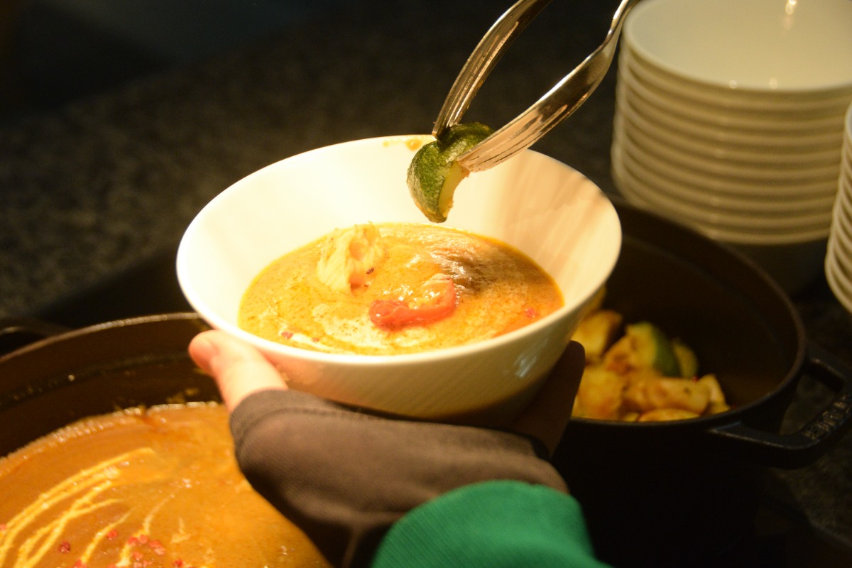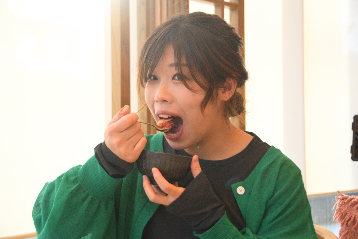 実はナンにもいちごのパウダーがかかっており、いちごの甘さがカレーのおいしさを際立てる。