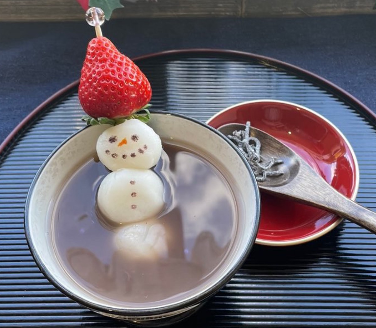 白玉といちごを使った雪だるまがかわいいぜんざいや、バラのように美しい大福など、目と舌で楽しんでみよう。