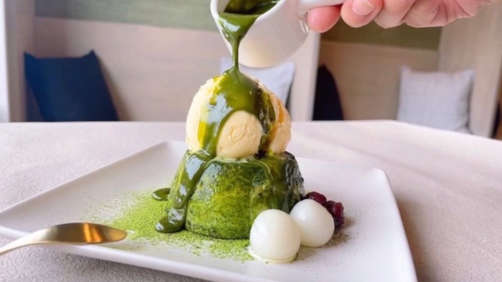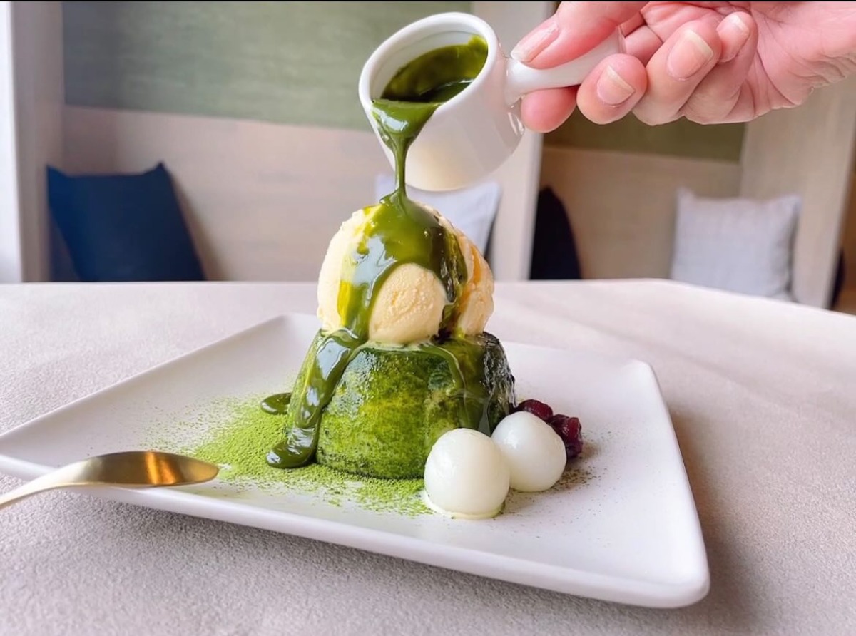 さらに濃厚抹茶チョコソースをかけてお召し上がり頂ける、抹茶好きにはたまらない贅沢な一品。