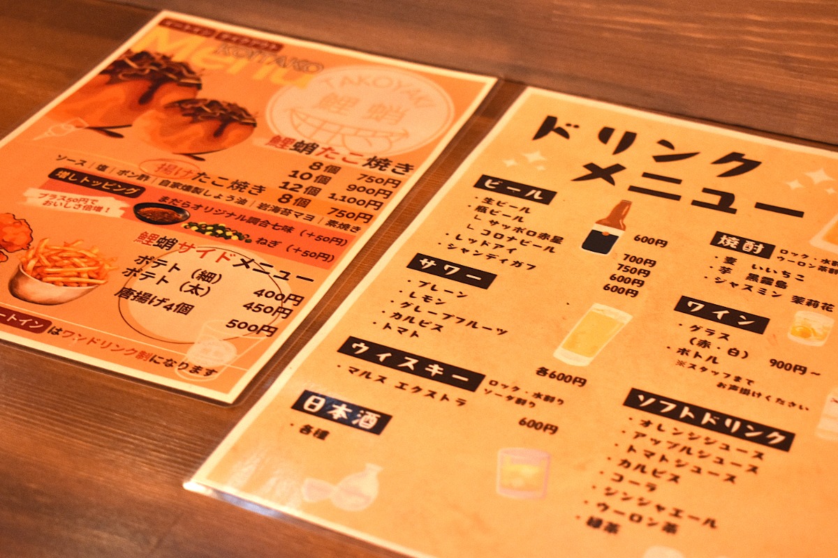 たこ焼以外にも魅力的なアラカルトメニューがたくさん