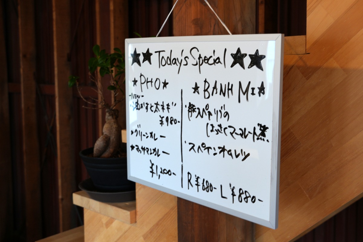 油かすのフォーや八朔マーマレードのバインミーなど気になるメニューが並ぶ。