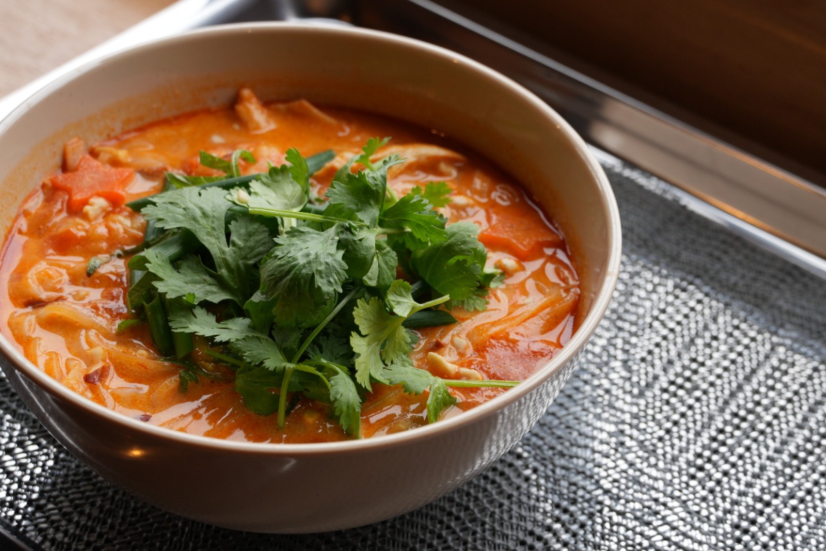 トムヤムスープはココナッツミルクを加えることで、ハーブの香りとスパイスの辛みがマイルドになっており、