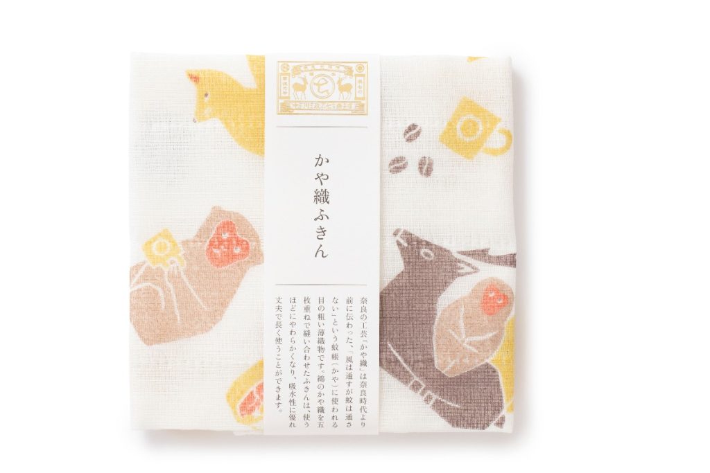 当店の代名詞ともいえる「かや織ふきん」は、おみやげにも喜ばれる代表アイテム。